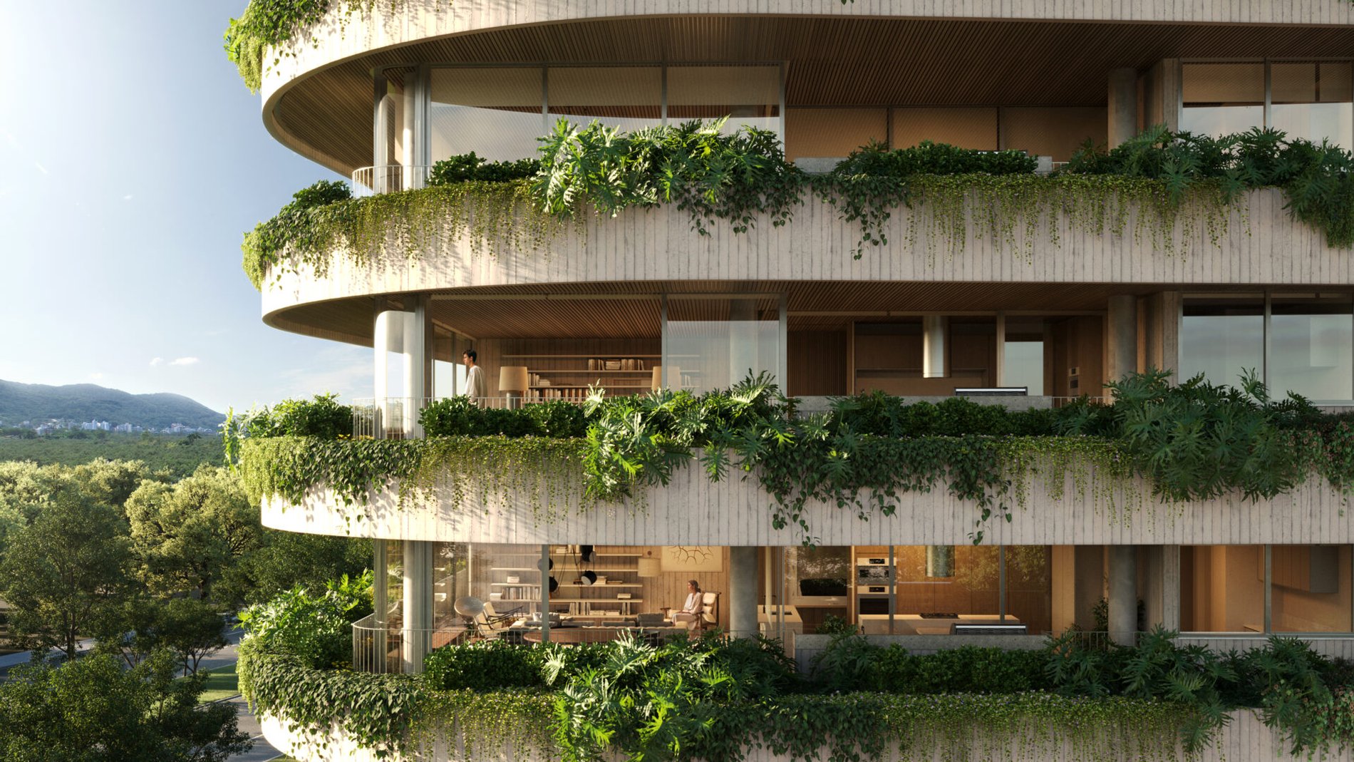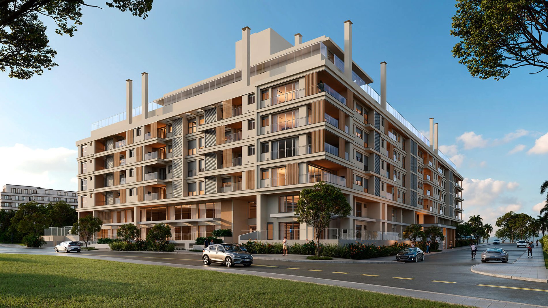 DER Mailand, da incorporadora Milano, é um exemplo emblemático. Em construção na Beira-Mar Norte, o empreendimento foi projetado por Guilherme Torres, com paisagismo de Alex Hanazaki e curadoria de hospitalidade assinada pelo Fuso Concept Hotel. Além da localização privilegiada, o projeto oferece vista eterna, floreiras, linhas curvas e áreas comuns com atmosfera de refúgio urbano. O metro quadrado ultrapassa os R$ 35 mil.